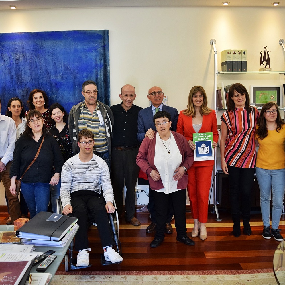 Este acto se enmarca dentro de la conmemoración del Día del Libro y la Consejera de Cultura y Turismo de la Junta de Castilla y León, María Josefa García Cirac, también se ha querido sumar con la recepción en su despacho de personas con discapacidad intelectual que acudieron junto al presidente de Plena inclusión Castilla y León, Juan Pérez, y a la gerente de la Federación, Vanessa García, para trasladarle la necesidad de que todas las personas puedan acceder a la cultura y, como consecuencia, reivindicaron la presencia de más libros en lectura fácil en las bibliotecas de la región. La Consejera anunció durante el encuentro que, en respuesta a la demanda de Plena inclusión, las bibliotecas contarán con nuevos libros en lectura fácil de los que no solo se beneficiarán personas con discapacidad intelectual, sino personas migrantes, personas mayores o personas sordas, entre otros colectivos.