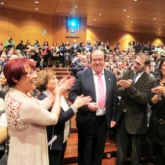 Tras el debate el presidente de Asprona, Manuel Fernández, acompañado de la consejera de Familia e Igualdad de Oportunidades, Milagros Marcos, hacía entrega del Sol de Oro a Lorenzo González en reconocimiento a su trabajo a lo largo de casi cuatro décadas. Como afirmaba Manuel Fernández, “periodo marcado por el avance social, integración e inclusión de las personas con discapacidad intelectual”.