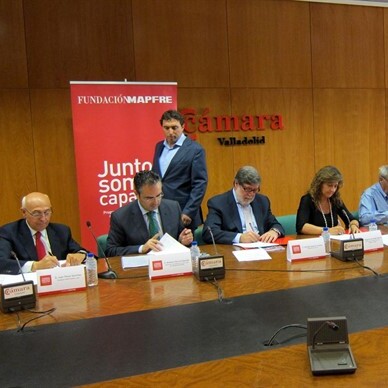 Hoy se ha dado un paso más hacia el empleo de la mano de Fundación Mapfre. Begoña Hernández, viceconsejera de Política Económicas y Empleo de la Junta de Castilla y León, Siro Giralda Piñeiro, director de Grupo Mapfre Castilla y León, Santiago Aparicio, presidente de CECALE, Fernando Escobillas López, presidente del Consejo Regional de Cámaras de Comercio; Jesús Corrales Mateios, presidente de FEAFES Castilla y león y Juan Pérez, presidente de FEAPS Castilla y León han firmado un convenio de colaboración para promover la integración laboral de personas con discapacidad intelectual y enfermedad mental bajo el título «Juntos Somos Capaces».