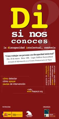 A partir del próximo día 20 de marzo, FEAPS Castilla y León comenzará unas jornadas informativas en los centros penitenciarios de la región para acercar esta realidad a los funcionarios de prisiones. Desde hace más ocho años FEAPS Castilla y León trabaja en diferentes centros penitenciarios con reclusos con discapacidad intelectual con el fin de apoyarles en este medio tan hóstil. Con estas jornadas se pretende dar un paso más hacia la óptima atención y reinserción de este colectivo.