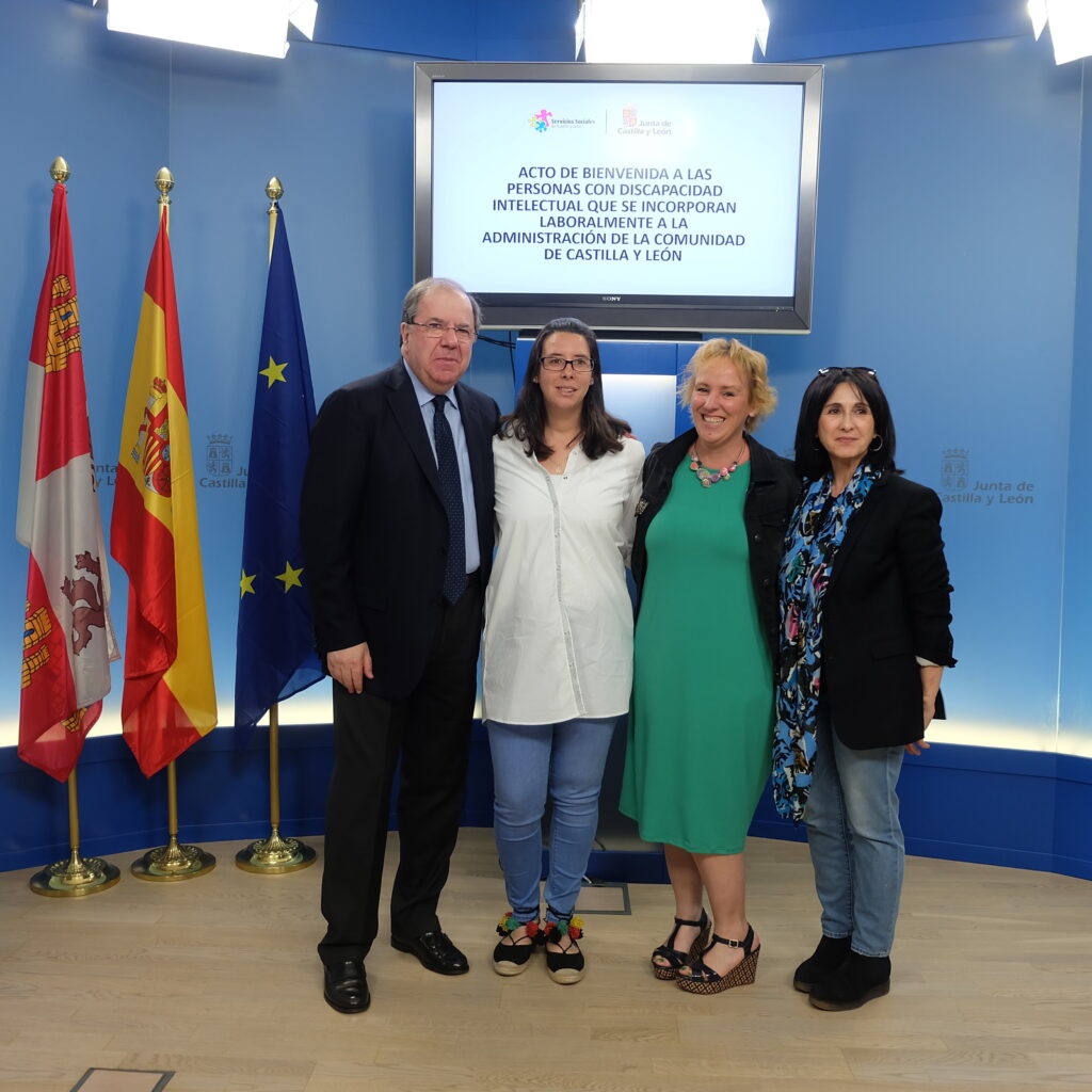 Plena inclusión Castilla y León está de enhorabuena. El presidente de la Junta de Castilla y León, Juan Vicente Herrera, ha dado esta mañana la bienvenida a los cinco primeros trabajadores con discapacidad intelectual de Administración autonómica, fruto de la primera convocatoria específica en este sentido convocada por la Junta.
