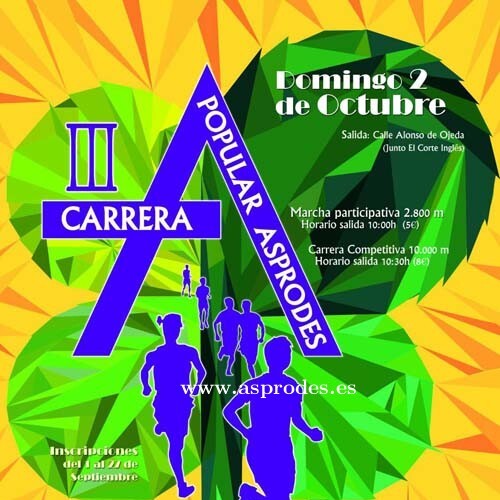 La celebración de la III Carrera Popular de ASPRODES tendrá lugar el domingo 2 de octubre y quiere convertirse en una fecha señalada para Salamanca y su provincia, ya no sólo por su carácter deportivo sino también por su sentido inclusivo, integrador, de sensibilización y festivo.