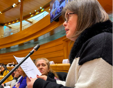 Representantes de todas las comunidades autónomas tuvieron unos minutos para exponer sus reivindicaciones en la cámara. Torres intervino y reivindicó en su discurso la necesidad de «más apoyo» para que las mujeres con discapacidad «puedan emprender y tener empleos dignos». A través de su propio testimonio, contó la realidad de muchas trabajadoras con discapacidad que no pueden vivir de forma independiente debido a los bajos salarios y falta de oportunidades.