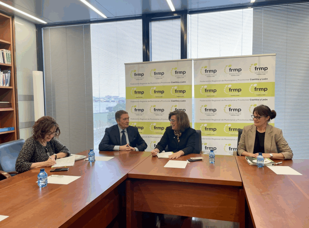 La presidenta de la FRMP, Ángeles Armisén, se reunió con Juan Pablo Torres, presidente de Plena inclusión CyL, su gerente Vanessa García, y Ana Belén Sevillano, técnico de área rural. Durante este primer encuentro, los responsables de Plena inclusión entregaron a la presidenta la publicación «Informe sobre los servicios vinculados a la dependencia en Castilla y León. La fotografía de los servicios a las personas dependientes en el ámbito rural«. Un análisis riguroso sobre la implantación de los servicios a la dependencia en el ámbito rural y alfoz de cada una de las provincias en el que se detalla la cobertura actual, así como los parámetros ideales a los que se debería tener en cuenta para garantizar una red óptima de servicios a las personas dependientes. Una herramienta útil para conocer la situación actual de cada territorio, poder identificar necesidades y espacios de oportunidad, así como para apoyar el diseño de la planificación territorial de servicios de atención a la dependencia.