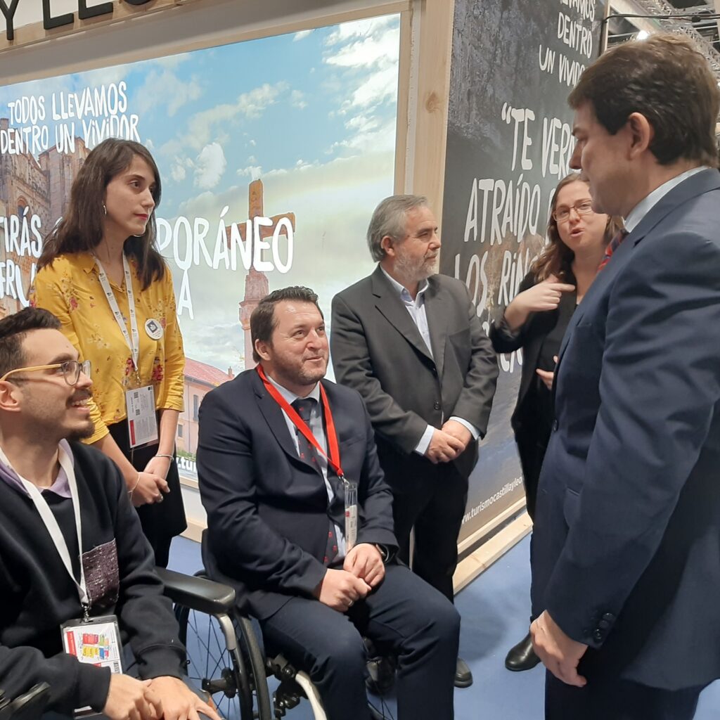 El pasado viernes, 24 de enero, el presidente de la Junta de Castilla y León, Alfonso Fernández Mañueco, visitó la Feria con motivo de la celebración del día de la comunidad en Fitur. El presidente durante su recorrido por los diferentes stand de Castilla y León se detuvo en el espacio accesible donde saludó a los representantes de las diferentes entidades y se interesó por la iniciativa. Durante el encuentro recordó que durante su etapa como alcalde de Salamanca hizo “una fuerte apuesta por la accesibilidad en la ciudad», un camino que espera continuar y reforzar en toda la comunidad.