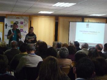 La jornada “Haciendo posible un ocio inclusivo” se ha celebrado en Valladolid. Este monográfico ha estado dirigido a las familias de personas con discapacidad intelectual para que conozcan esta nueva concepción del ocio. La jornada ha estado a cargo de David Fernández, responsable del Ocio y Deporte de FEAPS Castilla y León que ha desgranado a lo largo del día las particularidades y ventajas del ocio inclusivo. Todos los asistentes han conocido de primera mano la campaña de sensibilización que se ha lanzado para difundir el ocio inclusivo en la región bajo el título “YOSOYYOYMISAFICIONES” (los carteles y trípticos se han distribuido en la entidades federadas y centros de ocio de la región, también se puede descargar en www.feapscyl.org)