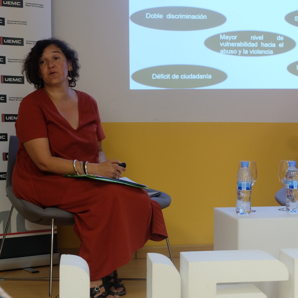 Julia Mohino, responsable del área de mujer de Plena inclusión Castilla y León ha inaugurado la jornada de hoy con la charla «La visibilizarían de la mujer con discapacidad: el reto de la igualad», acompañada de Sara Amor, joven con discapacidad intelectual y usuaria de la Fundación San Cebrián. Durante su intervención, Mohino señaló que «al igual que pasa con el resto de la población, existe una desigualdad entre hombres y mujeres» y que dicha desigualdad se agrava cuando hablamos de mujeres con discapacidad intelectual, «debido a que sufren una doble descremación».
