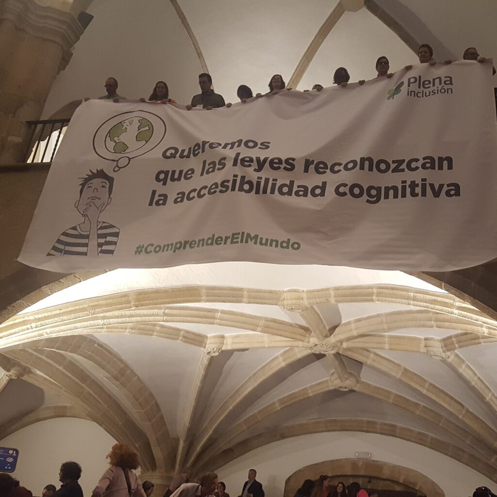 El congreso también contó con un lado reivindicativo en cada una de las exposiciones que hacían un llamamiento a la eliminación de barreras cognitivas, así como a «la necesidad de normas que garanticen la eficacia e idoneidad. Es una forma de que todos hablemos el mismo lenguaje», destacó Clara Delgado, del CEAPAT. Y en esta línea tambien, como cierre se desplegó una pancarta reivindicativa con el lema «Queremos que las leyes reconozcan la accesibilidad cognitiva» como grito unánime de una legislación para avanzar en la accesibilidad.