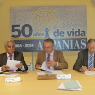 El alcalde de Villadiego, Ángel Carretón, y los presidentes de la Asociación Aspanias, Antonio Tajadura, y de la Fundación Aspanias Burgos, Miguel Patón, han firmado esta mañana sendos convenios de colaboración «para el desarrollo de actividades de interés común».